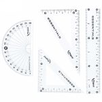 1 عدد خطکش، 1 عدد نقاله، 2 عدد گونیا، 2 عدد پرگار به همراه مداد، تراش، پاککن |