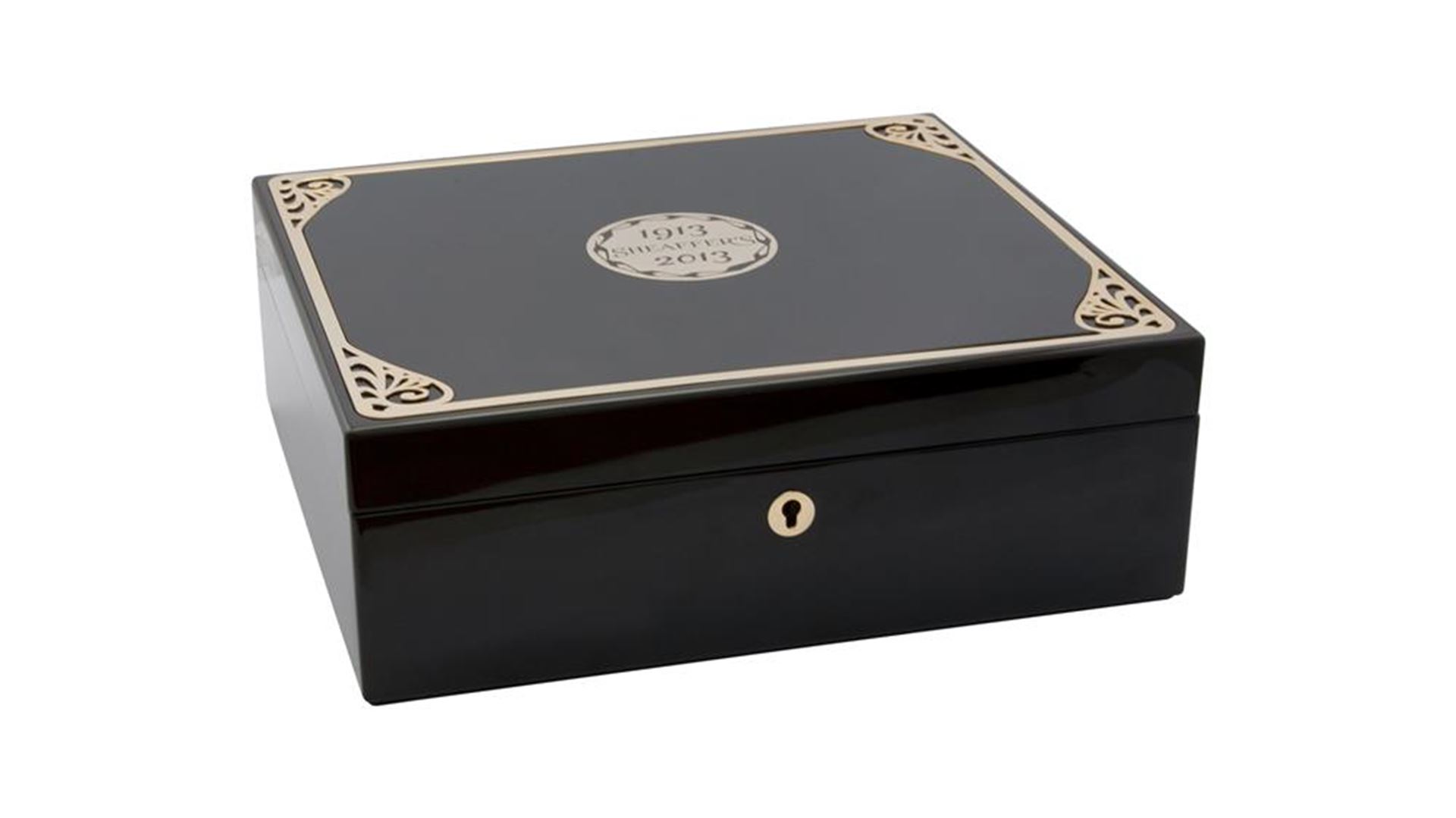 داخل جعبه علاوه بر قلم، شناسنامه قلم، کتابچه یادبود صد سالگی، کیف چرمی محافظ قلم و نیز شیشه و کپسول جوهر می باشد .