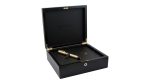 – این قلم در جعبه نفیس چوبی قفل دار بسته بندی شده است . داخل جعبه علاوه بر قلم، شناسنامه قلم،