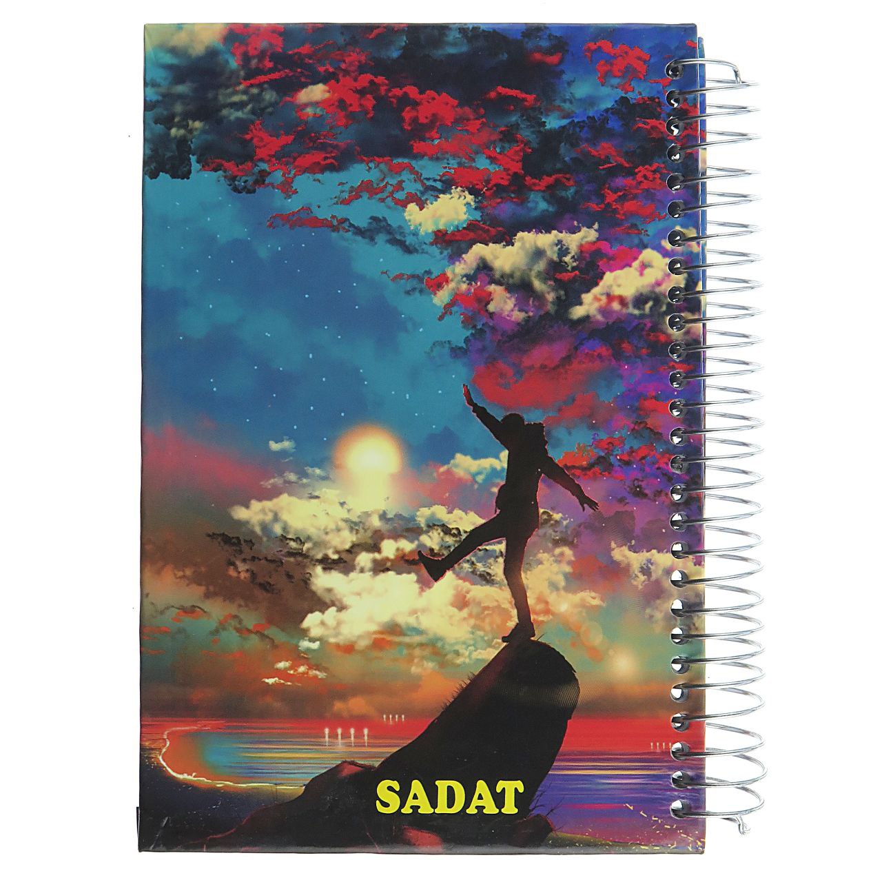 دفتر یادداشت 100 برگ دارد و جنس جلد دفترچه از طلق سخت با با رنگ های مختلف روی آن کاور شده.