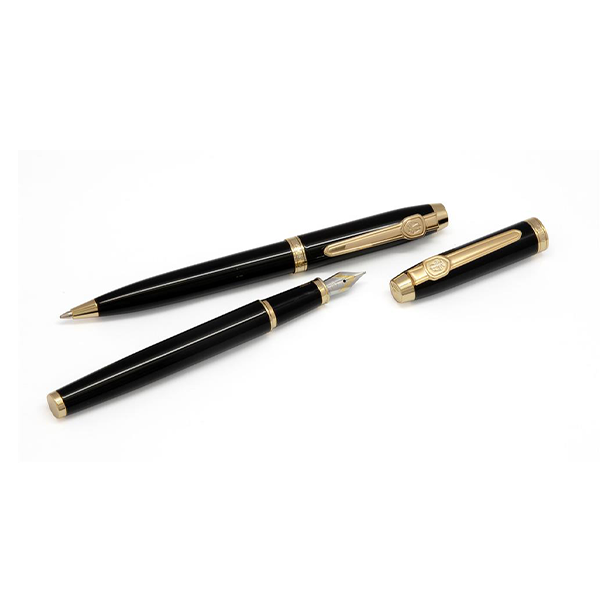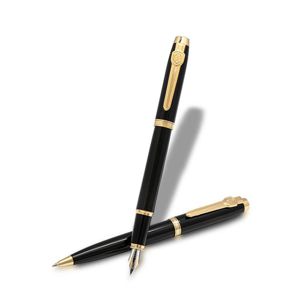 ست جفتی خودنویس و خودکار یوروپن مدل LEX در رنگ مشکی با گیره های زرد طراحی و تولید شده است.