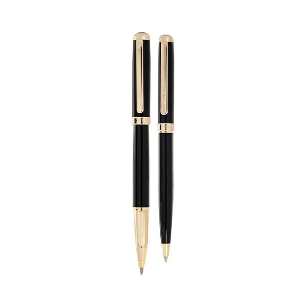 ست جفتی خودنویس و روان نویس ایپلومات مدل LORD گیره و قطعات با طلا آبکاری شده است.