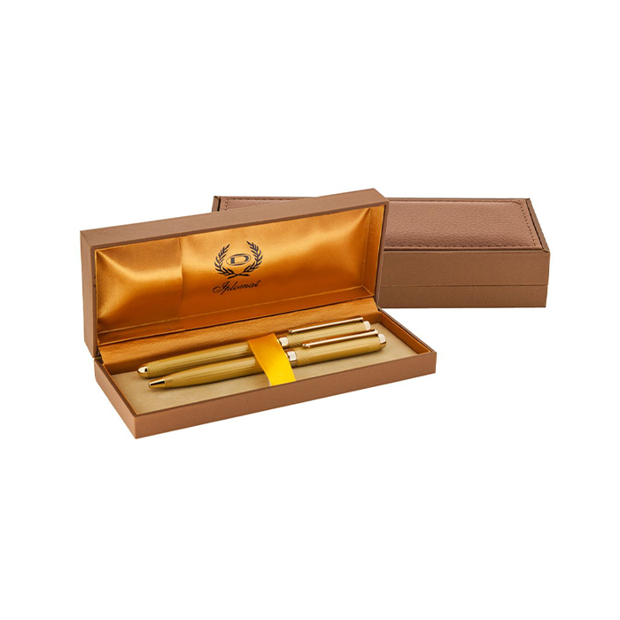 ست جفتی خودکار و خودنویس ایپلومات مدل LORD گیره و قطعات با طلا آبکاری شده است.