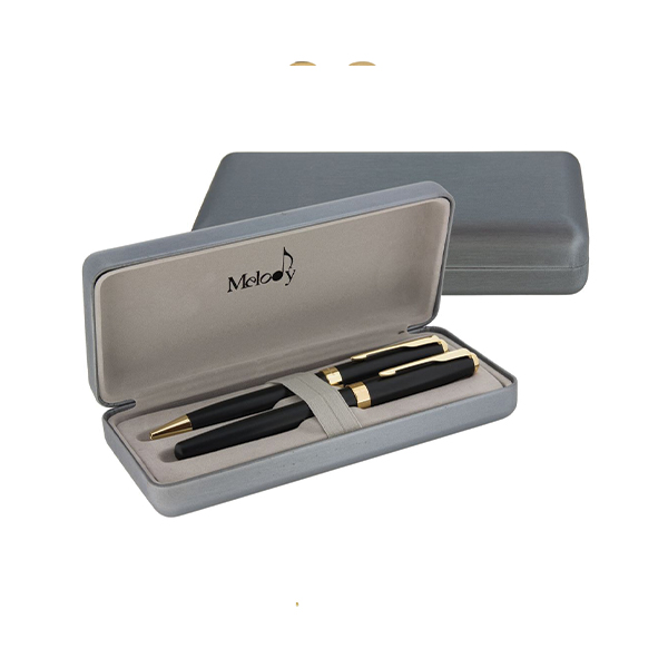 ست جفتی خودکار و خودنویس ملودی مدل M.37 گیره و قطعات با آبکاری طلایی شده است.