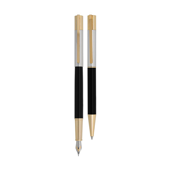 ست جفتی خودکار و خودنویس یوروپن مدل FLASH با طراحی بسیار جذاب در دو رنگ طلایی و مشکی کروم تولید شده است.