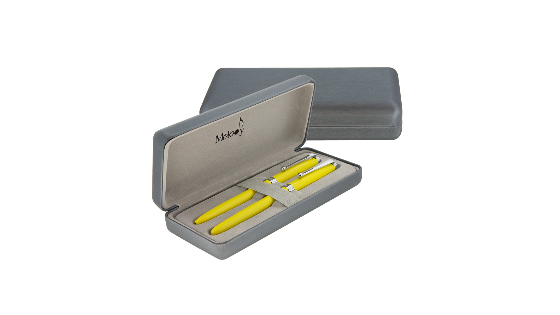 ست جفتی روان نویس و خودکار ملودی مدل M.50 گیره و قطعات با کروم آبکاری شده است.