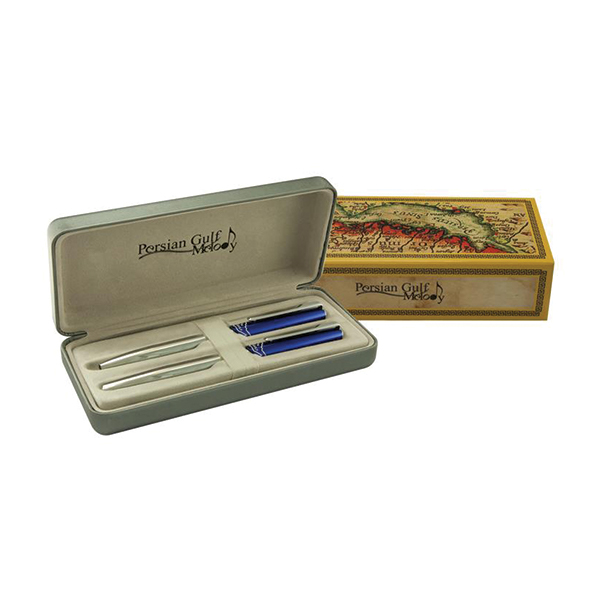 ست جفتی روان نویس و خودکار ملودی مدل PERSIAN GULF گیره و قطعات با کروم آبکاری شده است.
