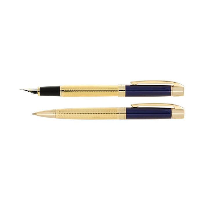 ست خودکار و خودنویس یوروپن مدل CLAN در دو رنگ آبی طلایی و مشکی طلایی تولید شده است.