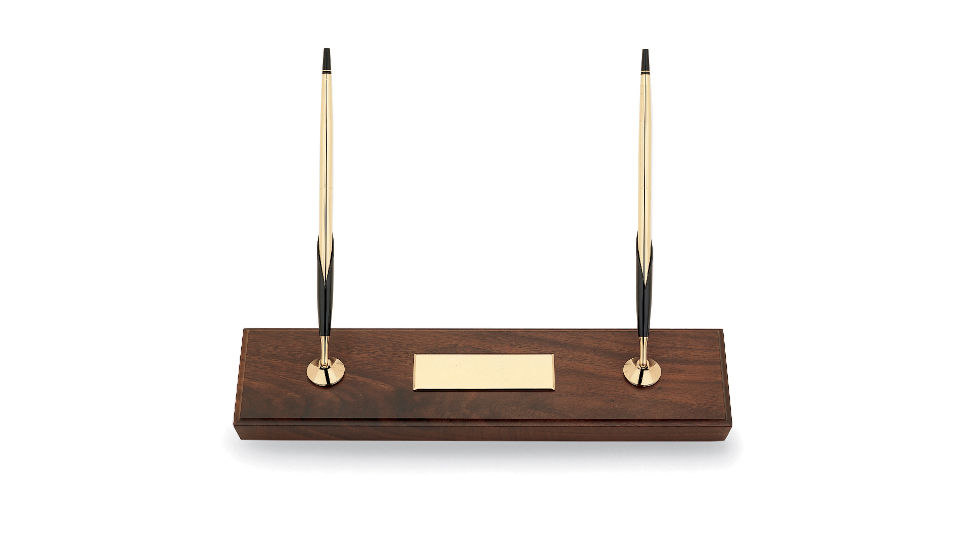 -روی پایه چوبی، امکان نصب یک پلاک ( روکش شده با طلای 23 عیار) موجود دارد که با حک نام و یا لوگو می تواند این ست را به عنوان یادگاری روی میز و در معرض دید مخاطب خود تبدیل نمایید.