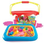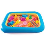 سطل جادویی خمیر شنی آریا به همراه میز بادی آریا،شامل 1.5 کیلو خمیر شنی حاوی 3 رنگ خمیر شنی 500 گرم،6 عدد قالب قلعه