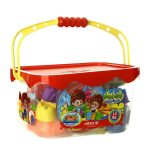 بزرگ،6 عدد قالب قلعه کوچک،8 عدد قالب حیوانات دریایی ،5 عدد ابزار،بیلچه ،چنگک، میز بادی،سفره می باشد.