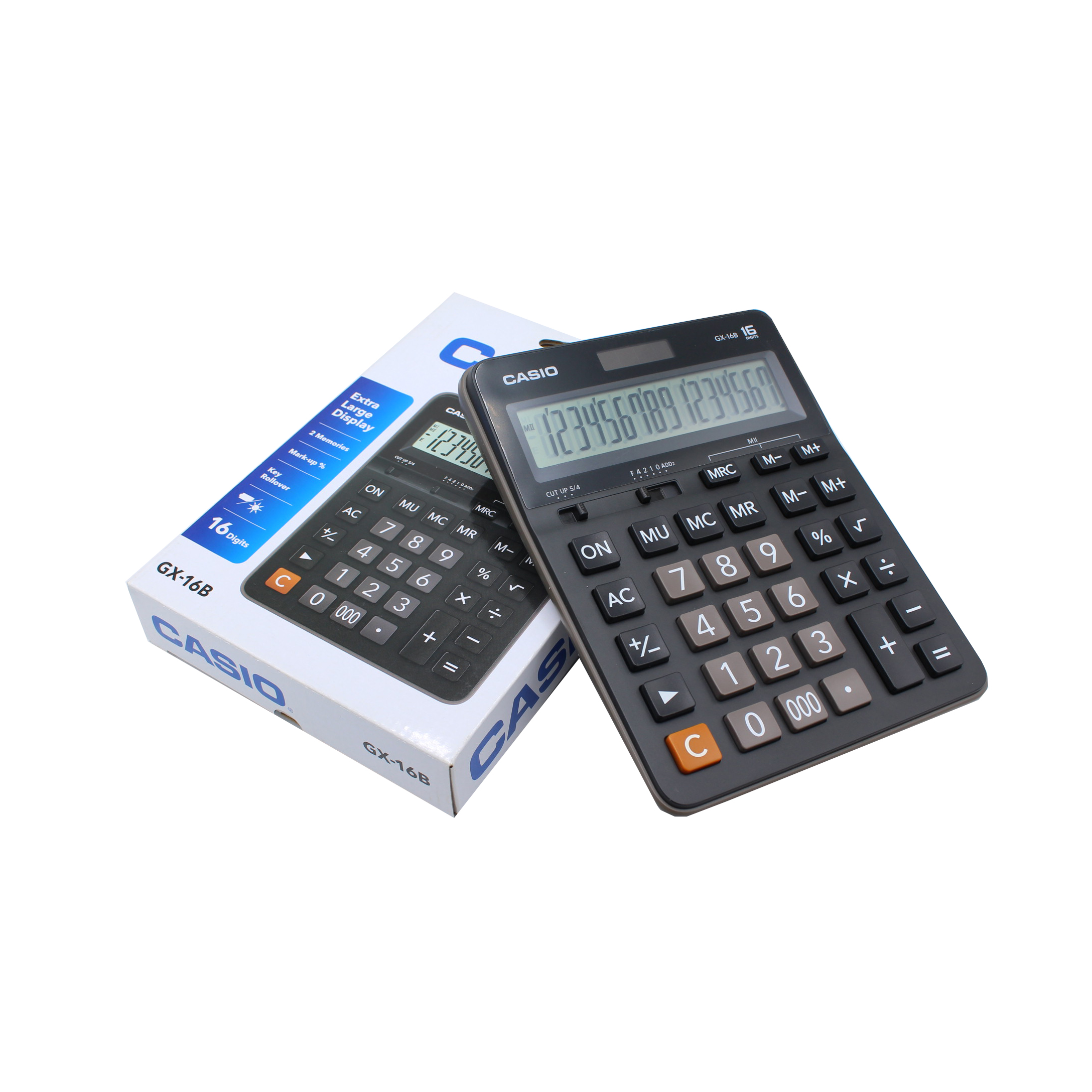 ماشین حساب کاسیو مدل GX-16B این ماشینحساب با داشتن قابلیت 16 رقم کارکتر خود میتواند برای محاسبات با اعداد طولانی مورداستفاده قرار گیرد.