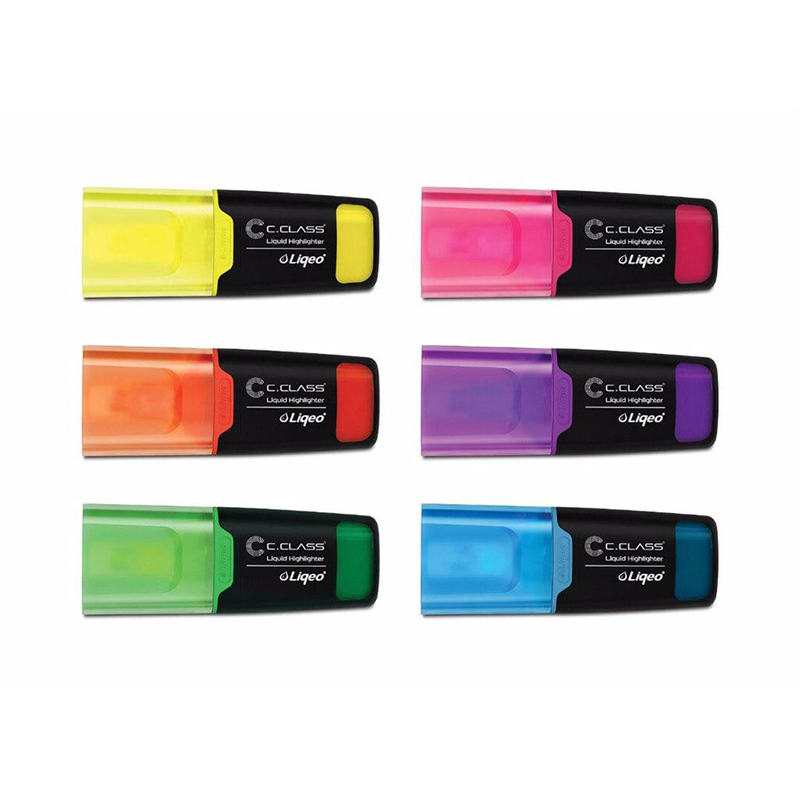 علامتگذارهای مایع سی کلاس در سه سایز قلمی، کوتاه، بلند و در بسته بندی دیسپلی در ۶ رنگ فلورسنت جذاب قابل ارائه میباشد .