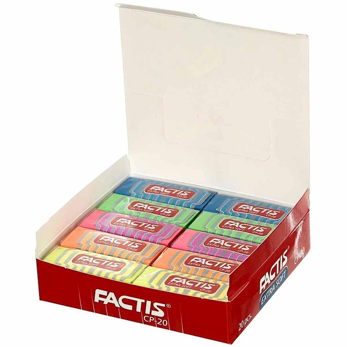 پاک کن رنگی فکتیس مدل CP20 با ساختار مکعب مستطیلی خود به دلیل داشتن زوایای تیز توانایی پاک کردن