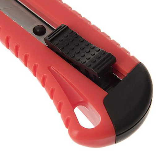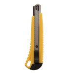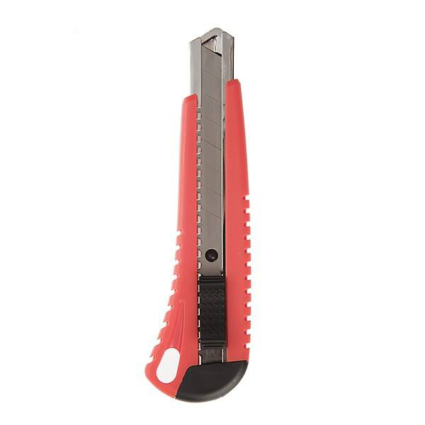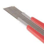 مقاومی دارد. طول این کاتر حدود 16 سانتیمتر است. این ابزار کاربردی بدنهای از جنس پلاستیک و ریل تیغهی فلزی