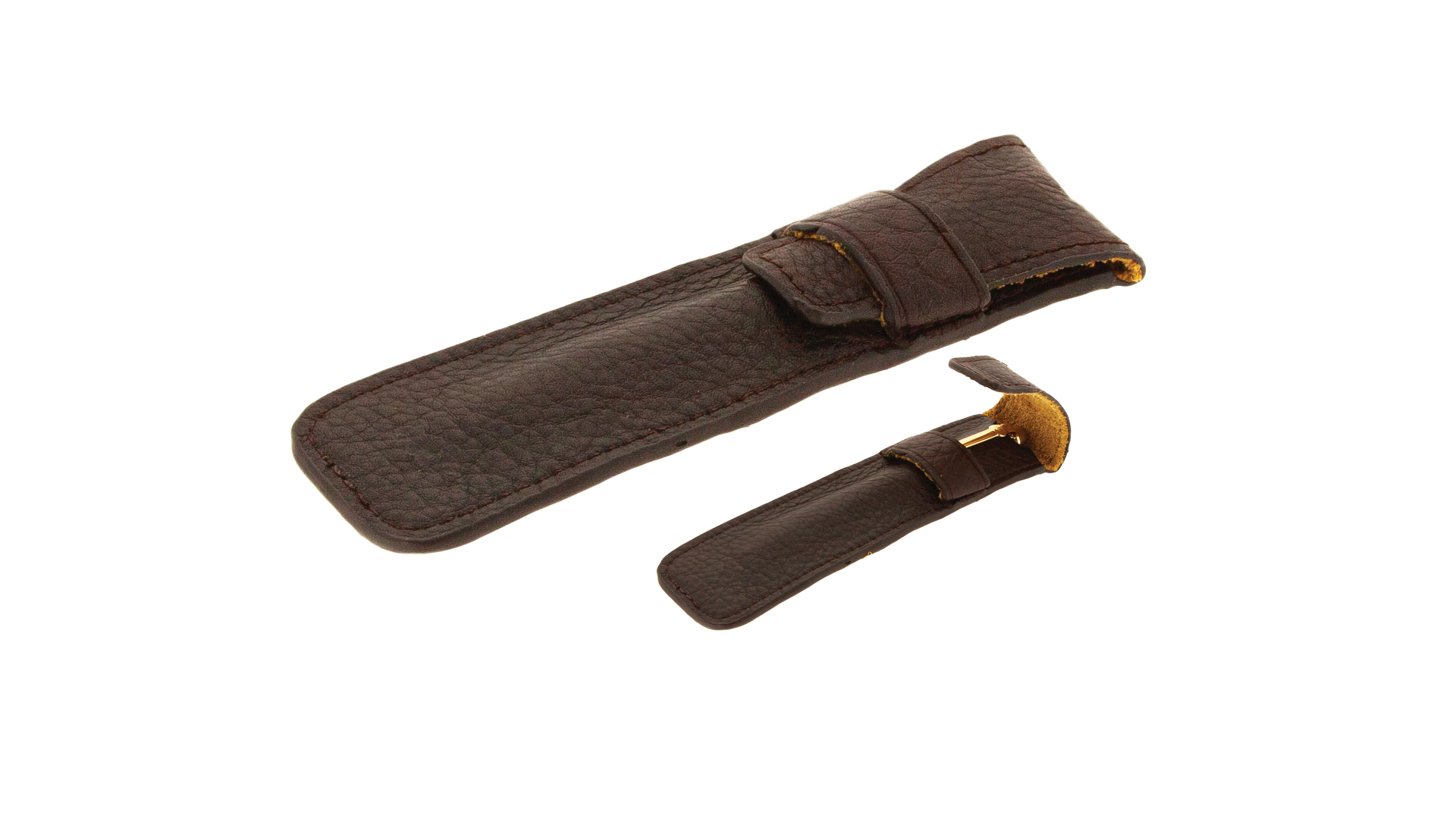 روی کیف نواری چرمی تعبیه شده است که در حقیقت قلافی است برای درب کیف و حفاظت کامل از قلم