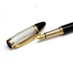 خودنویس یوروپن منشور کوروش مدل CYRUS CYLINDER (نقره) به شکلی منحصر به فرد و با الهام از متن و فرم مینیاتوری منشور حقوق بشر کوروش کبیر روی درب قلم ساخته شده است.