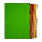 این دفتر 100 برگ دارد و جنس جلد دفترچه از طلق پلاستیکی با با رنگ های مختلف روی آن کاور شده.