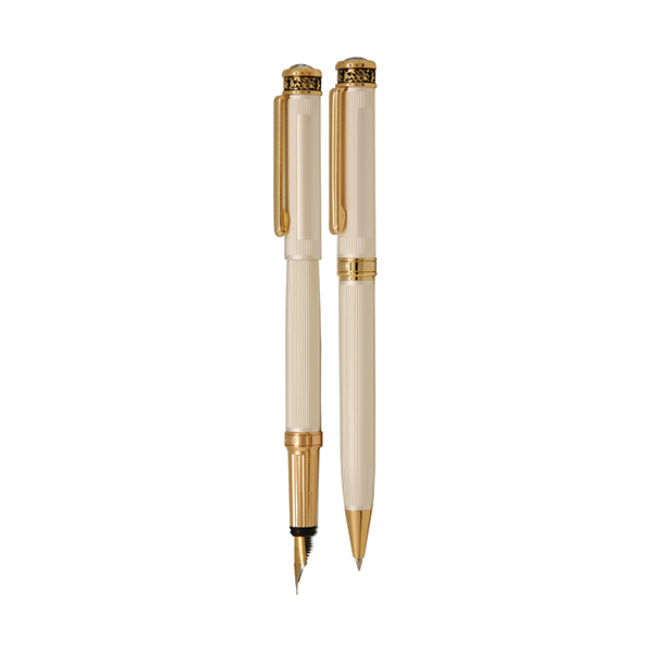 ست جفتی خودکار و خودنویس ایپلومات مدل PIZZA گیره و قطعات با طلا آبکاری شده است.